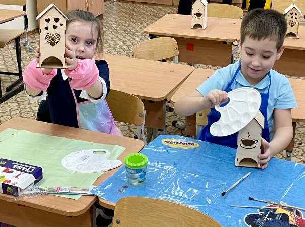 Школьники проделали непростую работу конструирования деревянного домика, а затем преступили к декору. Увлеченные процессом, дети использовали дизайнерские решения при создании собственного уникального изделия.